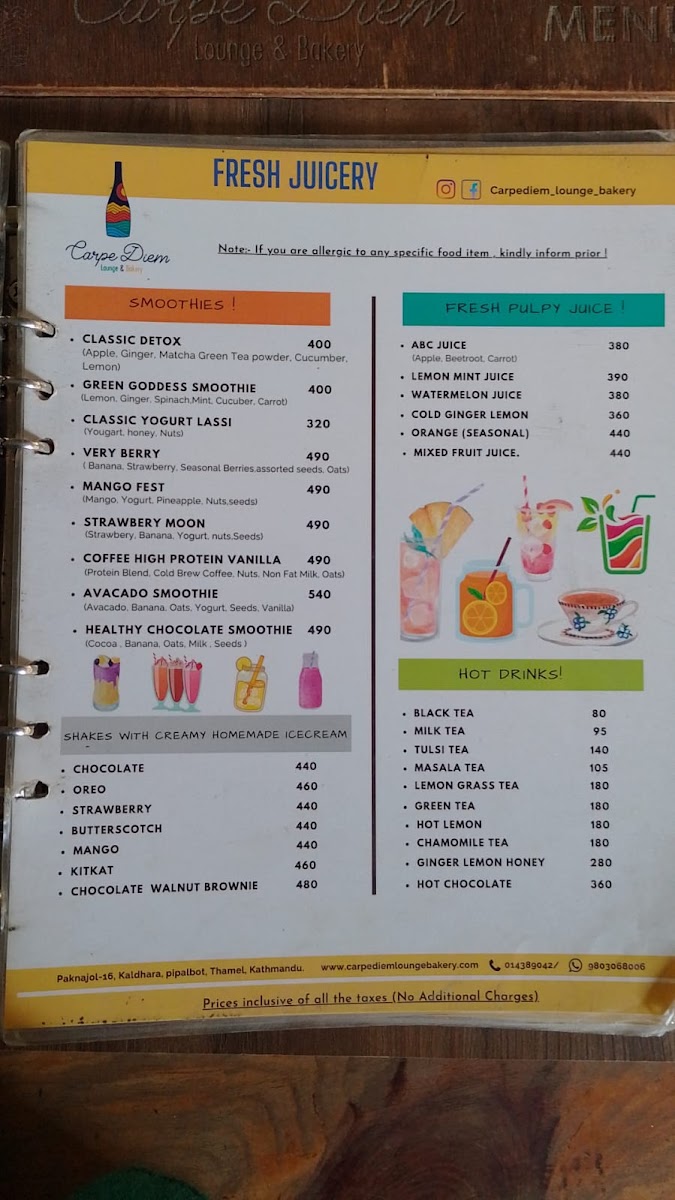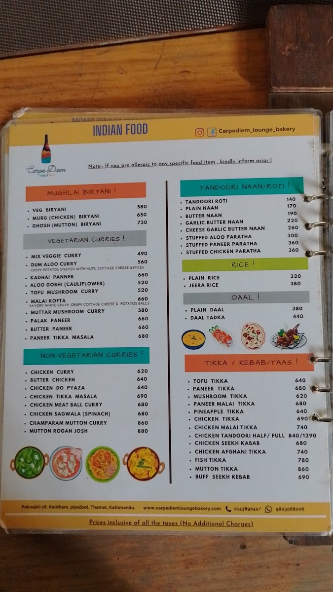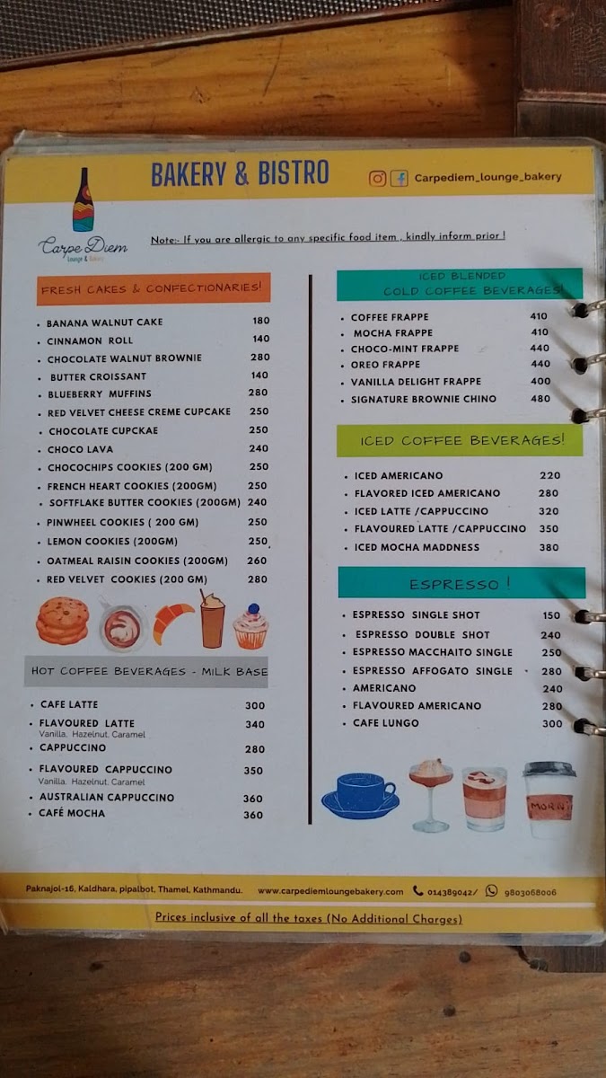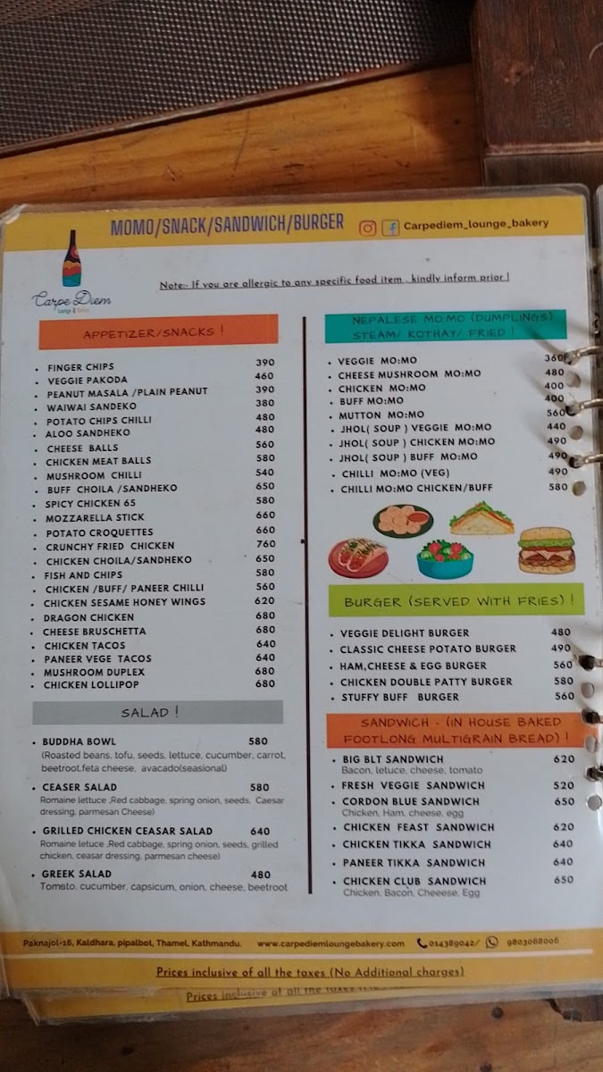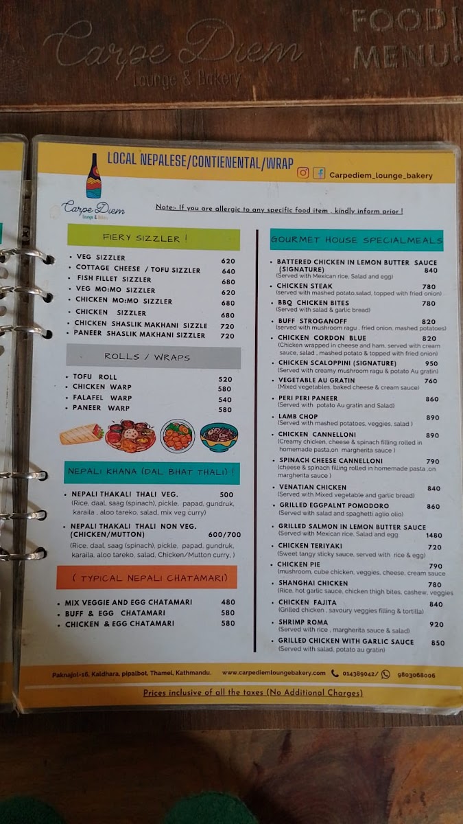 Carpe Diem Lounge & Bakery | Top Restaurant in Kathmandu Menu