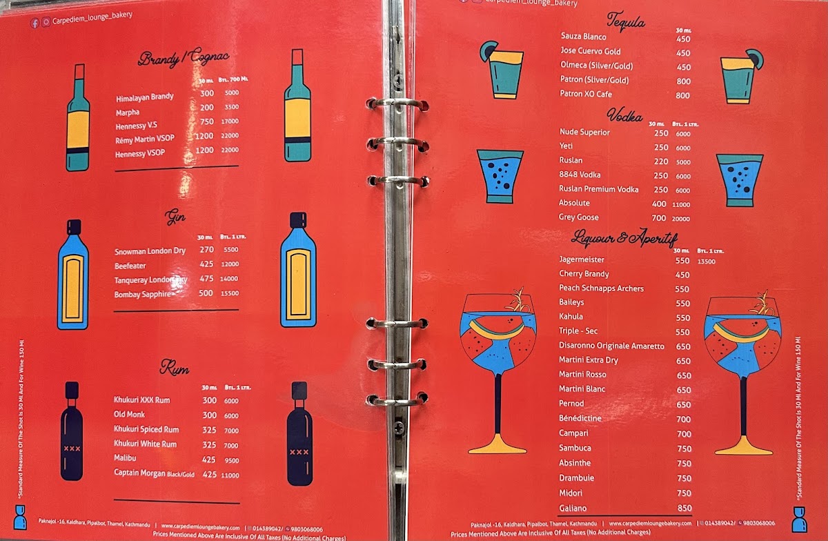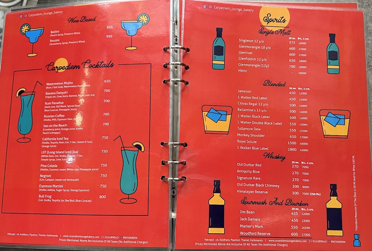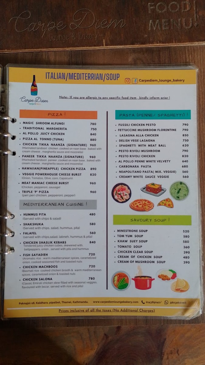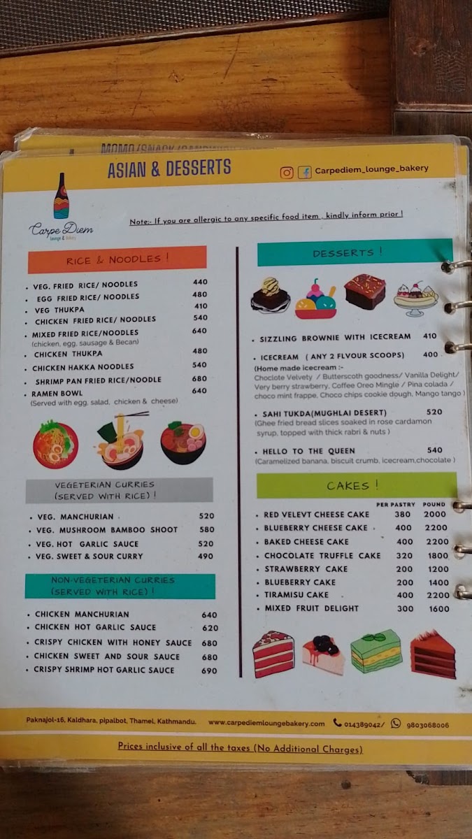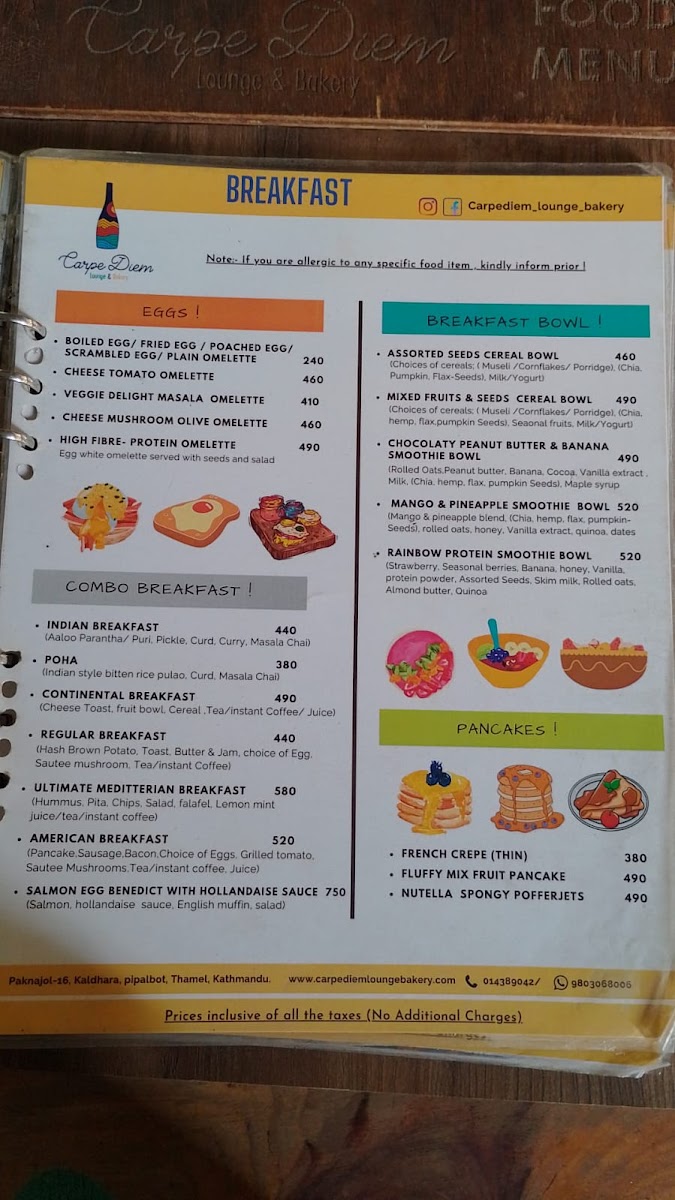 Carpe Diem Lounge & Bakery | Top Restaurant in Kathmandu Menu